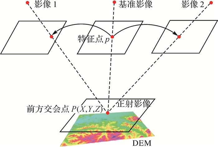 图 3 基于DOM/DEM的控制点自动提取示意图Fig. 3 Schematic diagram of automatic control points extraction from DOM and DEM