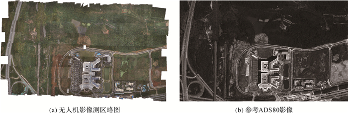 图 6 无人机影像测区略图和参考ADS80影像Fig. 6 UAV block and the reference ADS80 image