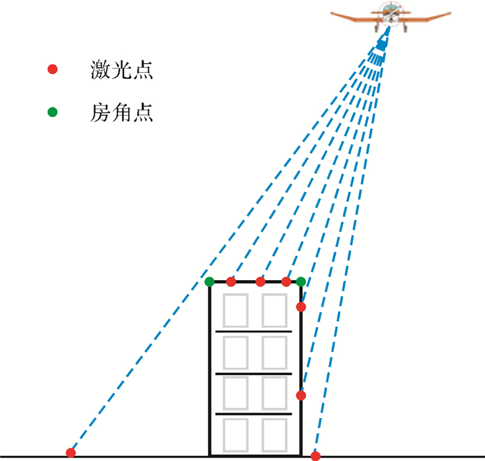 以上3类方法,具有不同的特点和适用范围。如图 12所示,由于LiDAR点云的采样密度(一般为4~10 pts/m2)相对于较易获取的超高分辨率影像(如分辨率4~10 cm的影像)来说仍然较低,LiDAR点云难以覆盖建筑物的边缘。因此,对于第1类方法,LiDAR点云转换生成的深度或距离二维图像中建筑物边缘位置和大小往往不够准确,易造成配准精度的降低;而第3类方法则大都需要人工辅助;第2类方法尤其是基于ICP的方法使用较为广泛。