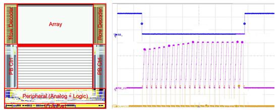 图2. 芯片版图布局(左),擦除操作测试波形(右)