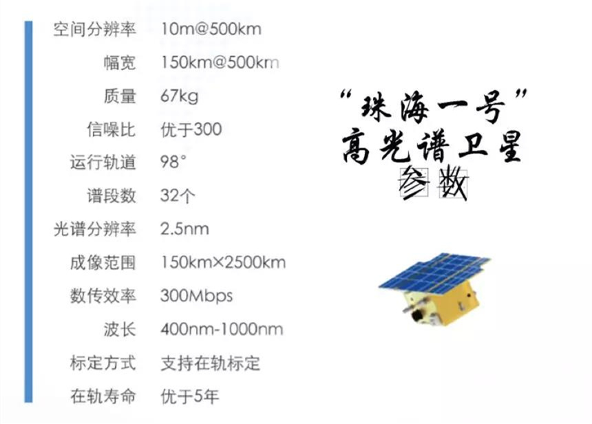 拍摄这张影像的欧比特OHS高光谱卫星,运行于500公里的太阳同步轨道,具有10米的地面分辨率,地面分辨率在国际领域中处于领先水平,光谱范围覆盖可见光至近红外(400nm~1000nm),波段可达256个,用户可根据具体需求选取任意32个波段(并可动态调整各波段范围),平均光谱分辨率2.5nm,幅宽超过150公里,最大长度可达2500公里的高光谱分辨率、强覆盖力的遥感卫星。从北京到海南的距离,“珠海一号”仅用一颗高光谱卫星即可完成拍摄。