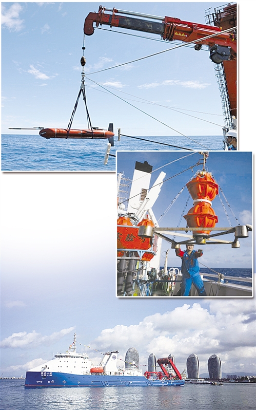 ▲ “海翼”号7000米水下滑翔机布放中。 (资料图片)