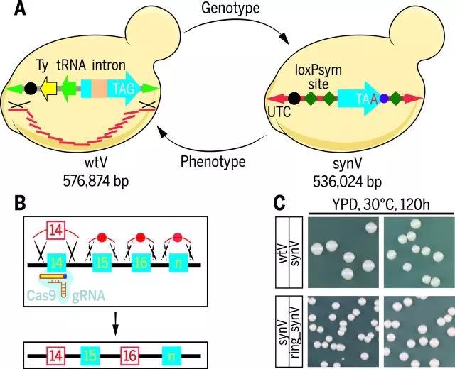 基因组设计合成是对基因组进行全新设计和从头构建,能够按需塑造生命,开启从非生命物质向生命物质转化的大门,推动生命科学研究由理解生命向创造生命延伸。然而,基因组合成面临长染色体难以精准合成、合成染色体导致细胞失活等难题。天津大学元英进、清华大学戴俊彪、深圳华大基因杨焕明等团队与合作者利用多级模块化和标准化人工基因组合成方法,基于一步法大片段组装技术和并行式染色体合成策略,实现了由小分子核苷酸到活体真核长染色体的定制合成,建立了基于多靶点片段共转化的基因组精确修复技术和DNA大片段重复的修复技术,成功设计构建了4条酿酒酵母长染色体,实现了真核长染色体合成序列与设计序列的完全匹配;原创性地建立了基因组缺陷靶点快速定位方法,提供了表型和基因型关联分析的新策略,通过缺陷靶点的定位与排除,解决了合成基因组导致细胞失活的难题;在此基础上,构建了人工环形染色体,为当前无法治疗的染色体成环疾病发生机理和潜在治疗手段建立了研究模型。该研究为深化理解生命进化、基因组与功能关系等基础科学问题提供了新的思路。相关研究进展以4篇论文形式发表在2017年3月10日《科学》[Science, 355(6329): eaaf4704, eaaf4706, eaaf4791,eaaf3981]上。研究成果引起国内外专家和媒体的极大关注。Science同期发表专文评论,Nature、Nature Biotechnology、Nature Reviews Genetics、Molecular Cell等多个顶级期刊均发表专文或亮点介绍,高度评价本工作,认为这是第一个全合成真核生物基因组的重要里程碑。