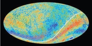 这些异常之中最大的异常似乎就是一条明显的分界线,它将表现较小温度差异的区域与表现较大温度差异的区域隔离开来,宇宙学家们将其称为“邪恶轴心”,原因是因为这条线诡异地和太阳系的黄道平面相吻合。
