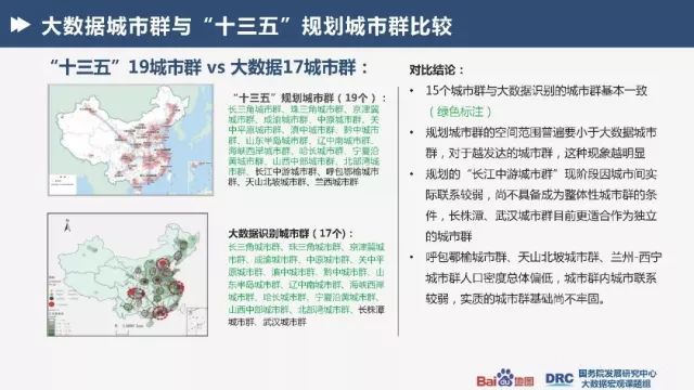 首先,“十三五”规划中的城市群范围普遍小于大数据识别的城市群,越发达的城市群这一现象越明显;