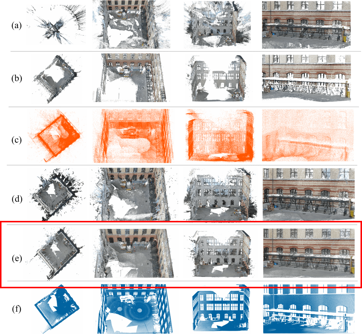 论文对所提出的方法进行了大量的实验验证,结果表明LiDeNeRF能够同时提高新视点合成的视觉效果以及三维场景的几何结构表达精度,达到与目前同类方法对比最优的重建结果。