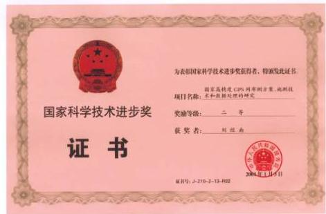 奖项名称:1999年度国家测绘科技进步一等奖、2000年度国家科技进步二等奖。