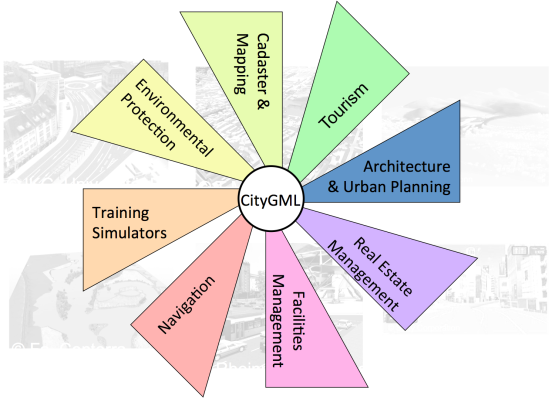 有了CityGML,空间数据就变成了虚拟化城市的“操作系统”。利用CityGML的实践应用包括了交通的优化和能源使用效率的优化。柏林城市模型使得一系列城市服务改进措施(经济发展/投资、房地产、城市市场和实践管理等)的落实成为了可能。几十年来,城市一直利用地理信息数据和技术改善各种服务和运营水平。其中最好案例就是伦敦2012年奥运会和残奥会中对地理信息的利用。伦敦利用地理信息数据建立了路线网络,并估算了赛事对交通的影响。伦敦当局也利用了地理信息来实现安全运营的目标。