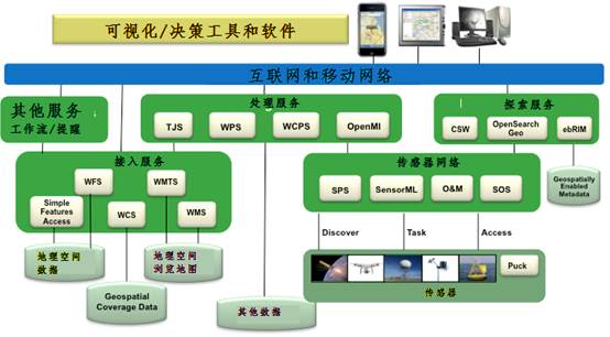 图4 用于决策支持的地理信息访问和处理的OGC服务架构