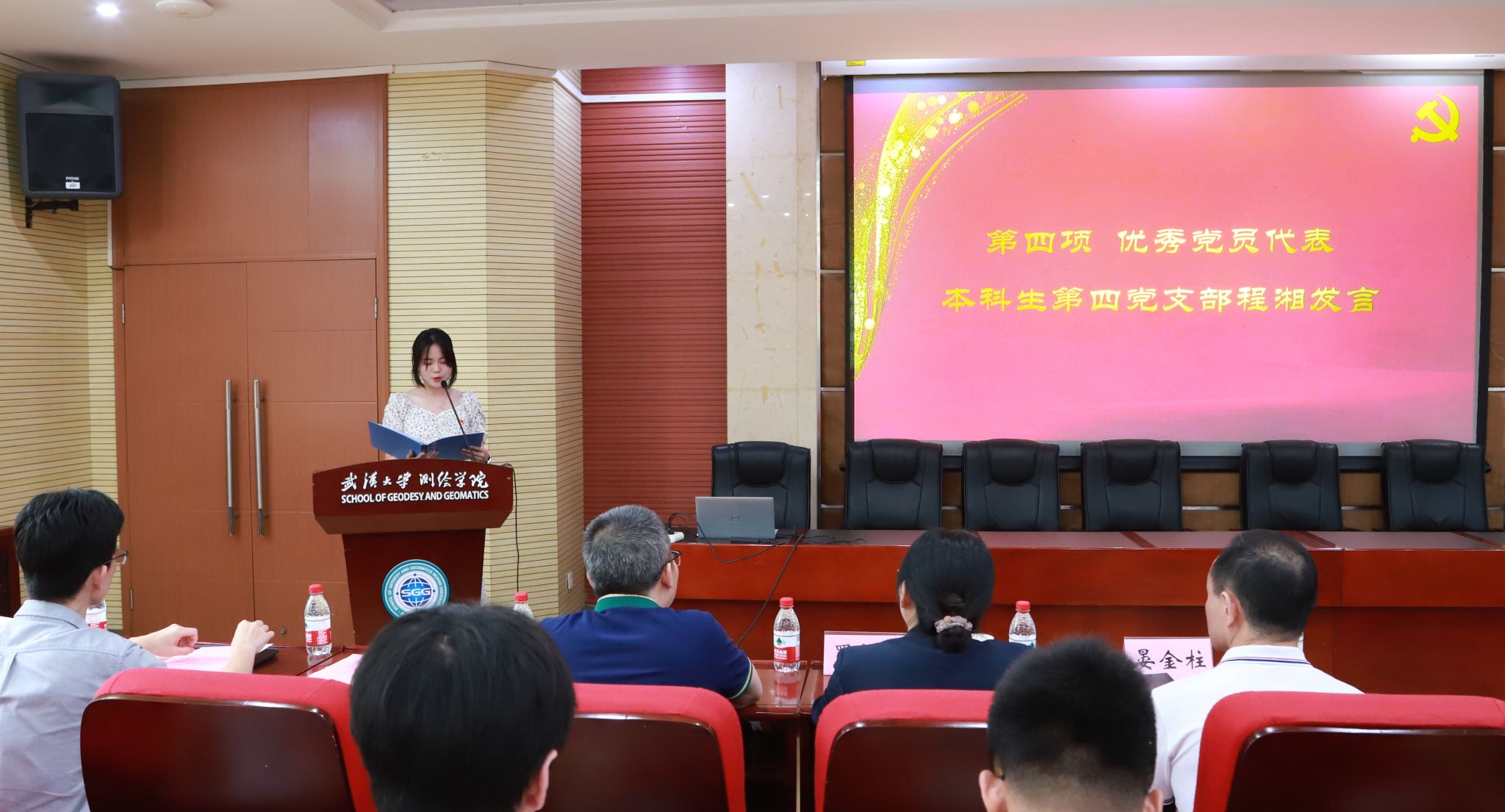 本科生第四党支部副书记程湘代表优秀学生党员发言。她分享了作为党支部副书记在政治上逐渐成熟,业务上更加投入,支部建设取得成效的感悟和经验。她认为作为一名党员,我们要始终保持清醒的头脑,坚定理想信念,不断提高自己的政治觉悟和业务能力要时刻以党员的标准严格要求自己,不断自我完善,自我提高,自我革新,要有强烈的责任感和使命感。