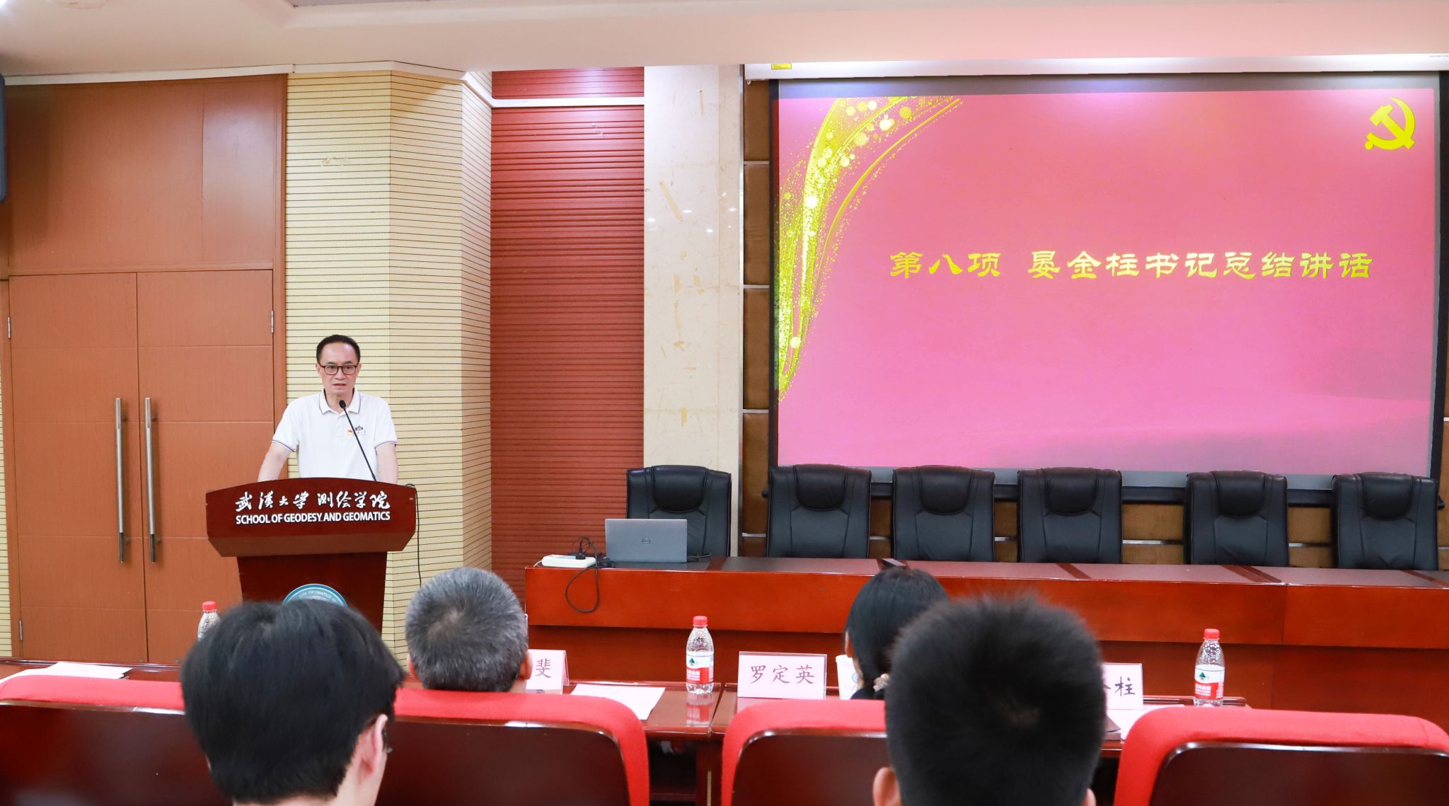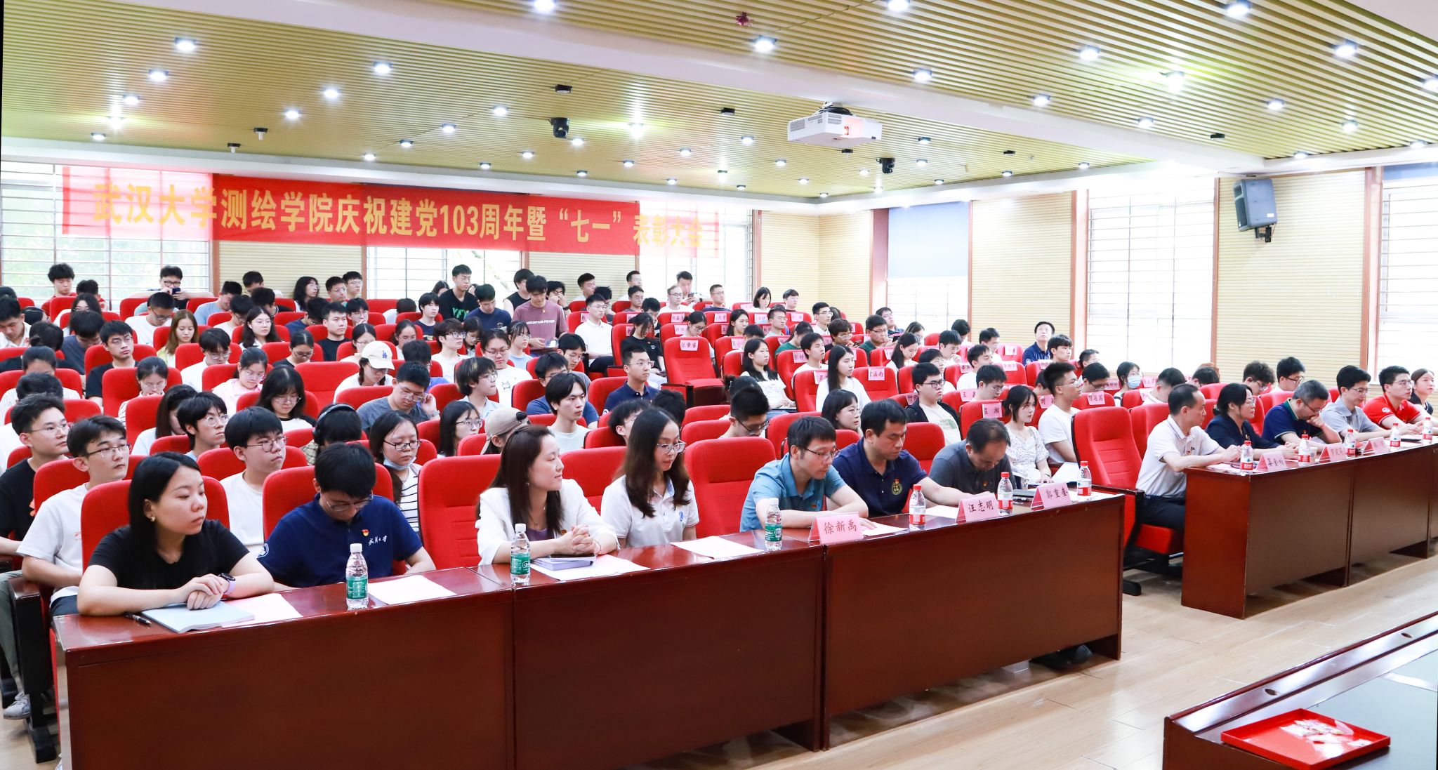 6月20日下午,学院在202报告厅举行庆祝建党103周年暨“七一”表彰大会。院党委书记晏金柱,副书记郭重奎、胡俊英、罗定英,副院长汪志明、郭斐,党委委员、地球物理大地测量研究所所长徐新禹出席了本次活动。参加大会的还有学院辅导员等党务干部、学生党支部书记、受表彰的党员以及新发展的党员。大会由院党委副书记胡俊英主持。