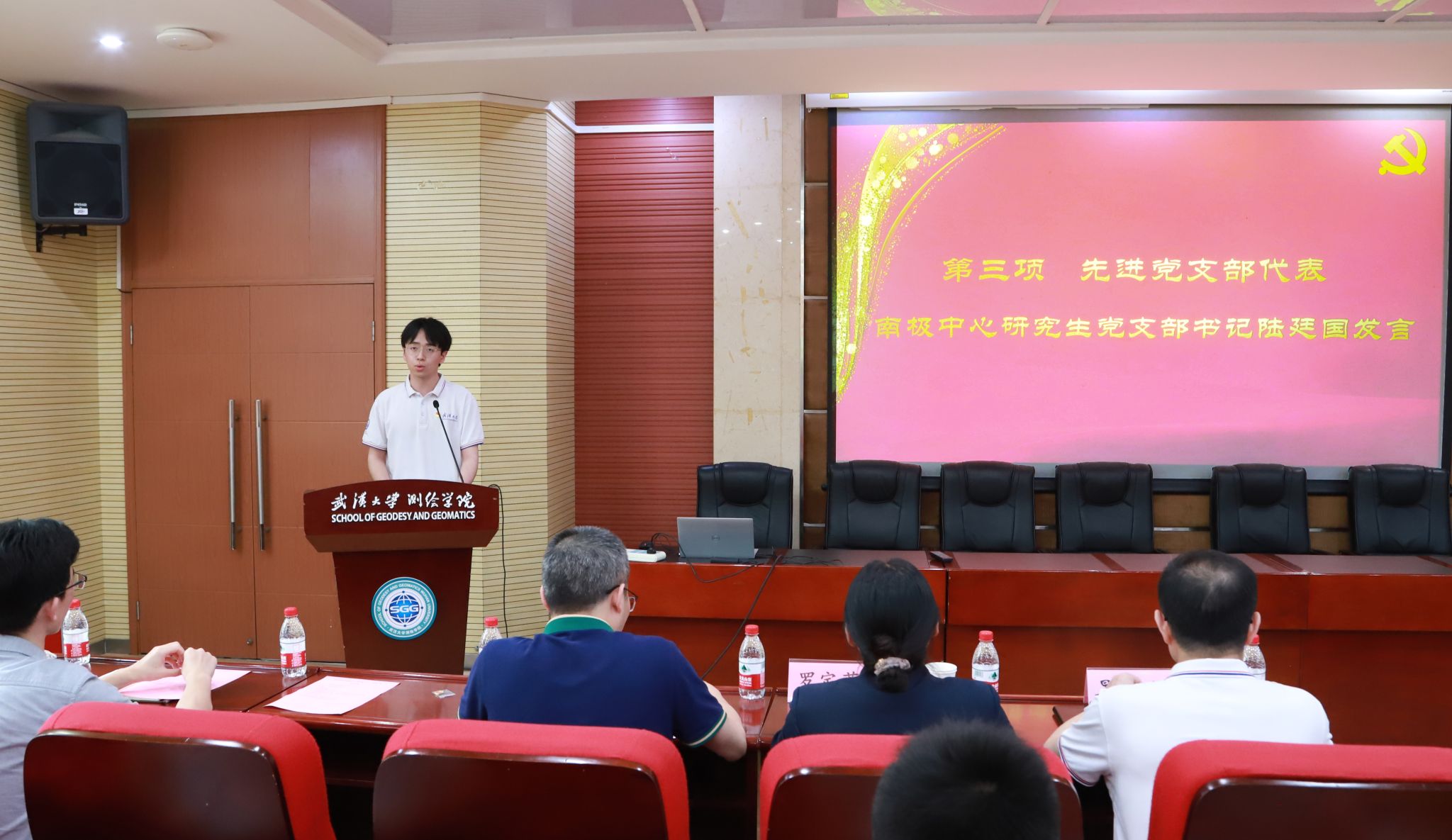 南极中心研究生党支部书记陆廷国代表先进学生党支部发言。他分享了支部深入学习贯彻习近平总书记给武汉大学参加中国南北极科学考察队师生代表的重要回信精神,聚焦学科特色,强化品牌效应,弘扬南极精神,展现青年担当,服务国家战略,投身科研报国,将支部建设与南极精神相结合,取得了明显成绩,入选全国高校“百个研究生样板党支部”的经验和特色。