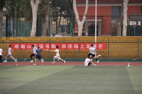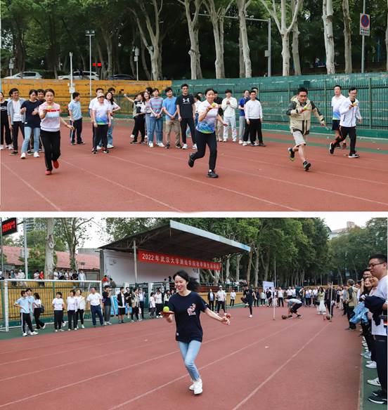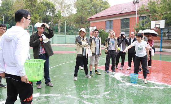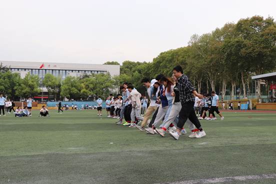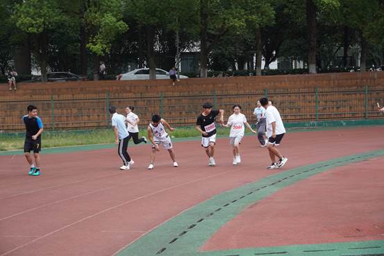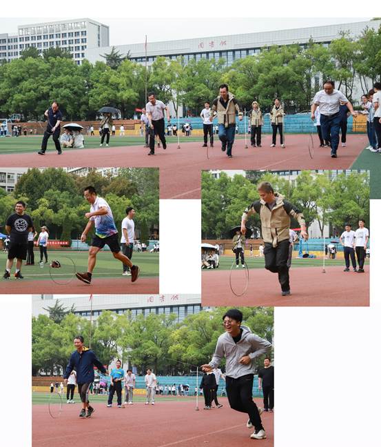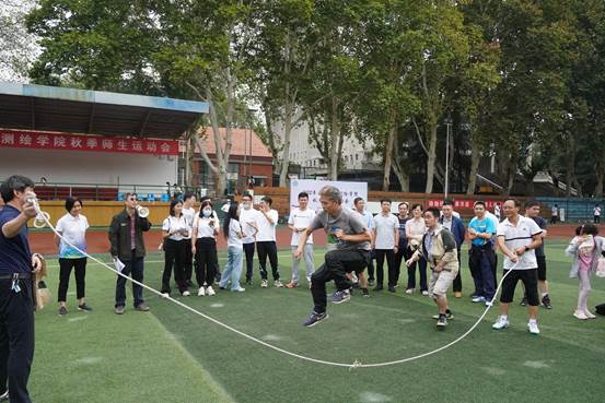随后天空飘起了小雨,但同学的热情不减,单腿火车跑、风火轮、六人七足,八字跳绳等趣味项目,同学们齐心协力,团结拼搏!田径场另一边的篮球场上,学院教职员工们也在跳长绳、定点投篮、拾贝、足球射门等学院传统趣味项目比赛中展开激烈比拼,与同学们共同享受着运动带来的欢乐。