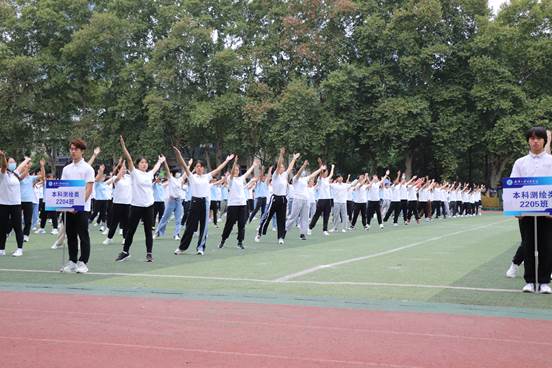 由本科2020级、2021级、2022级全体同学参与的广播操比赛拉开了运动会竞赛项目的精彩角逐,场上同学们动作一致,精神饱满,迸发出青春的热情与活力。