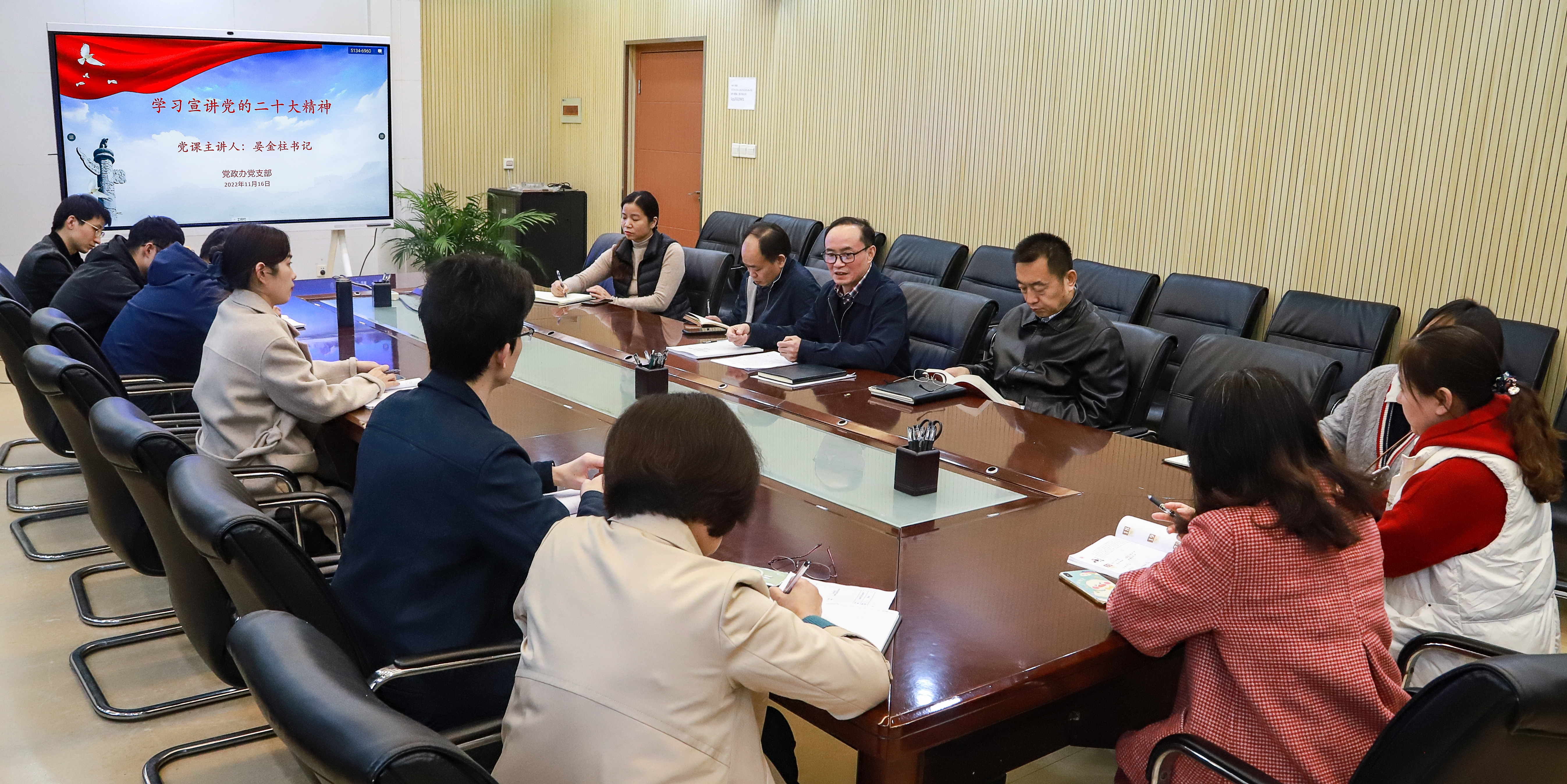 11月16日,学院党政办公室党支部学习党的二十大精神主题党日活动在204会议室举行,院党委书记晏金柱、副书记郭重奎、胡俊英、副院长史振华及党政办公室全体成员参加了学习活动。