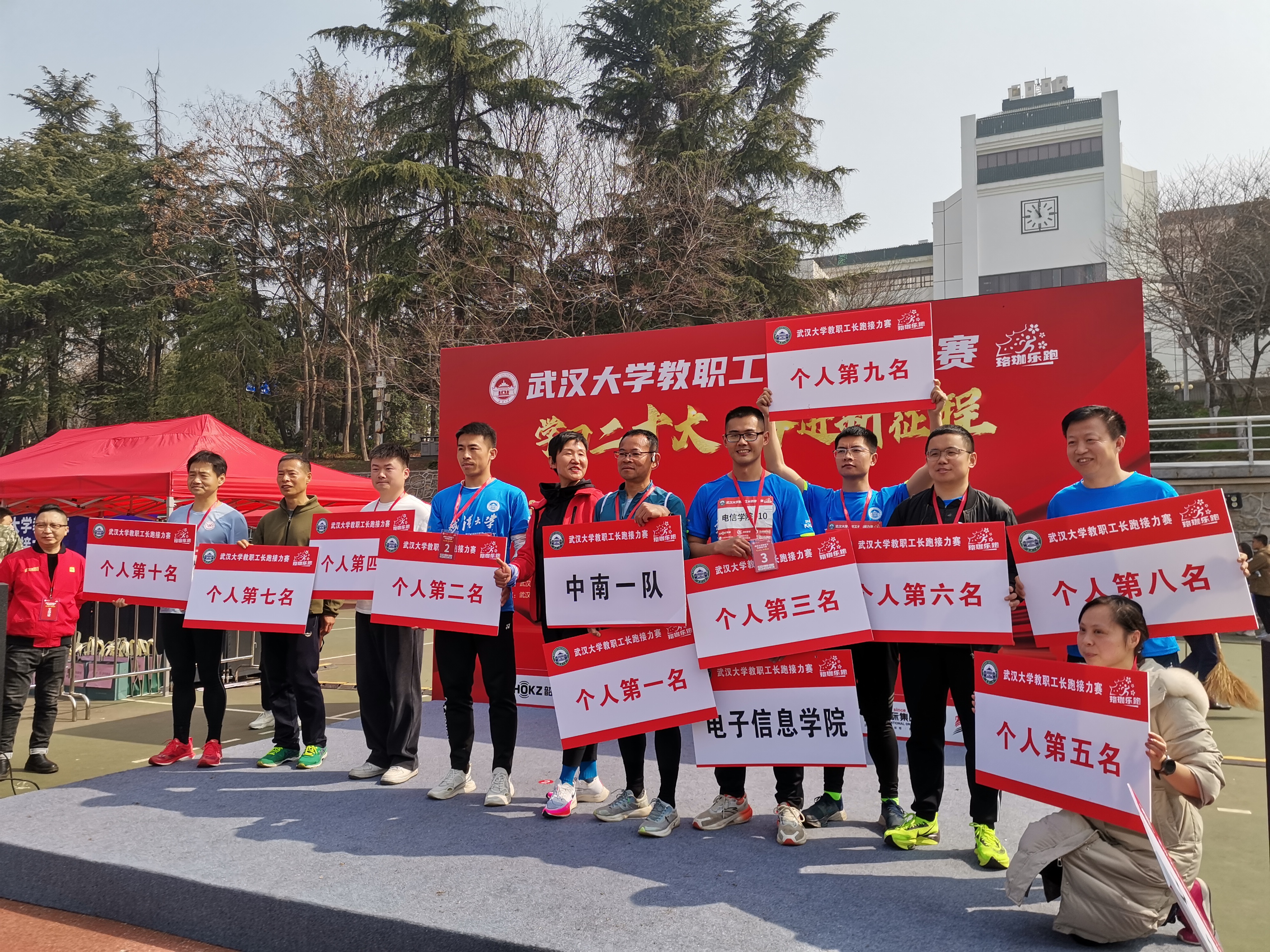 3月4日,春暖花开,阳光灿烂,武汉大学“学习二十大•奋进新征程”教职工长跑接力赛在“九一二”操场成功举办。beat365体育官方网站长跑健儿,不畏强手,发扬顽强拼搏的精神,以1小时26分16秒的优异成绩,勇夺团体第四名!其中个人项目,徐新禹教授以7分23秒荣获男子全校第八名、40-49岁年龄段第二名的荣誉,秦钰邯以7分30秒荣获20-29岁年龄段第三名的荣誉。