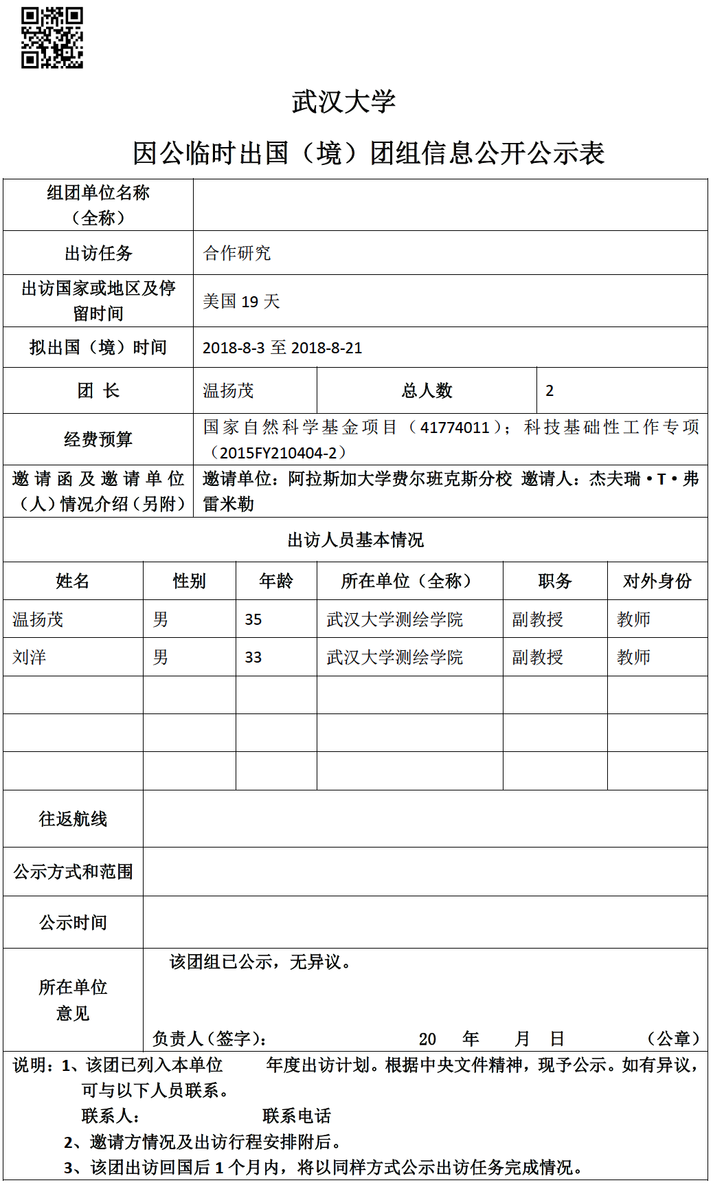 因公临时出国(境)信息公示
