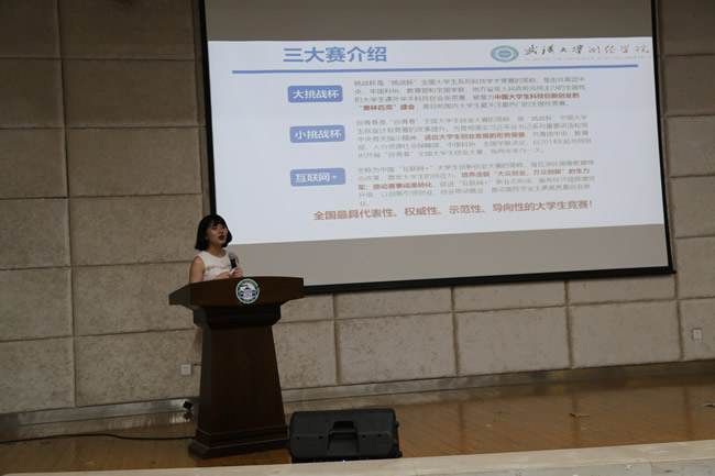 经验分享环节,科技论文板块一等奖获得者孙章宇同学讲述他四年参与技能大赛的收获,从大一的懵懂参与到大四的熟练应对,每一次不同的体验经历都使他的各方面能力更进一步。本次典礼同样请到两位参与创新创业的优秀本科生分享经验和感想,他们分别是2018年“创青春,汇得行”湖北省大学生创业大赛创业计划组金奖获得组组长朱雨晴同学和国家级大学生创新训练项目“我最喜爱的项目”获奖组组长张立贤同学。