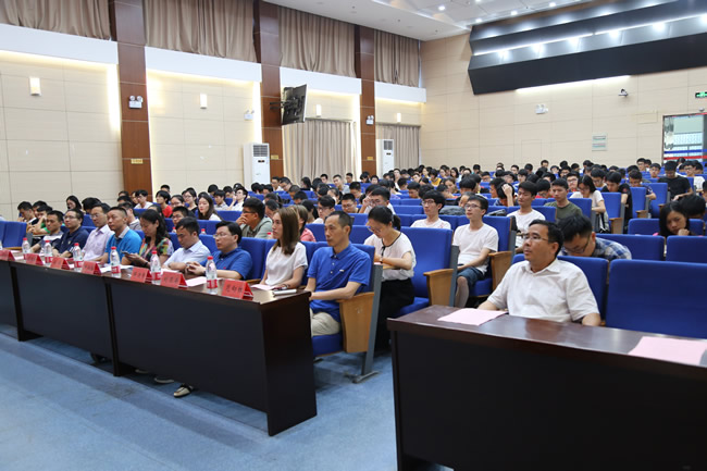颁奖仪式后,花向红教授以“大学生科技创新”为主题,为同学们讲解大学生参与科研项目的具体流程、注意事项,勉励同学们树立勤奋敬业的态度、形成观察与思考习惯、秉承诚实严谨的学风、发扬探索和追求精神积极参与创新创业项目,花老师生动的讲述为同学们今后参与创新创业大赛提供重要指导。