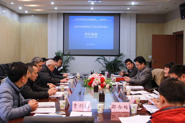 12月14日,深圳市高精度似大地水准面建立项目验收会在beat365体育官方网站召开。宁津生院士、武汉大学副校长李建成院士、院长姚宜斌教授、湖北省地震局吴云研究员、中山大学夏林元教授、武汉市测绘研究院肖建华院长、中铁大桥勘测设计院有限公司方辉兵工程师、深圳市规划和国土资源委员会顾俊调研员、深圳市地籍测量大队石强高级工程师、国家测绘地理信息局第一测量大队王晓强工程师等参加了会议。会议由石强主持。