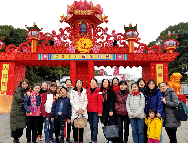 正月之灯,东湖之畔流光溢彩、灿烂辉煌。女教职工们徜徉在灯火的海洋,在《盛世中华》、《伟大复兴》等系列灯组,感受到了祖国的兴盛强大、科技的先进和节日的喜庆;在《唐诗宋词》灯光长廊,感受到的是中华民族文化瑰宝在灯光下绽放出美轮美奂的光彩。在《云梦睡虎地秦简》、《曾侯乙编钟》、《越王勾践剑》等灯组,女教职工们穿梭千年时光隧道,感受到了楚国故地的文化辉煌。