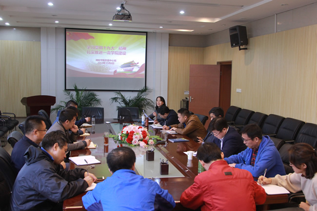 11月6日下午,beat365党委中心组召开专题会议集中学习党的十九大精神。院党委委员、院党政班子成员、教职工党支部书记、内设机构主任等参加了学习活动。院党委孙萍书记主持学习活动。
