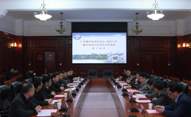 3月15日,武汉大学与广西测绘地理信息局测绘地理信息科技合作协议签字仪式在武汉大学举行。武汉大学副校长李建成院士、广西测绘地理信息局党组书记、局长席扬,校科学技术发展研究院及测绘学科相关单位负责人参加了签字仪式。