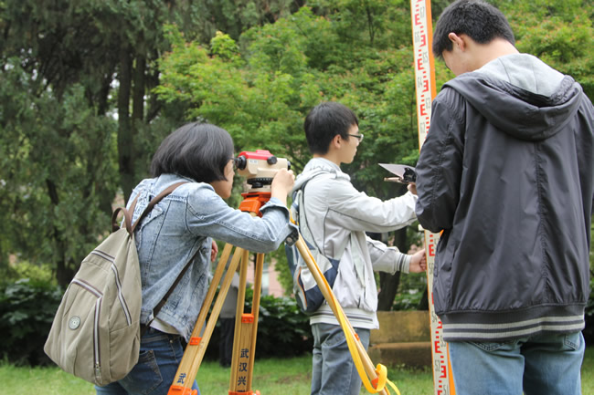 此次比赛主要是外业操作比赛,测绘工程专业分为导线测量和水准测量两个比赛项目,每个项目又分为仪器操作测量环节和数据处理环节。地球物理专业包括地磁、地电、重力三个比赛项目。此次测绘工程专业有85支队伍,地球物理专业有9支队伍,共360余名学生参加。