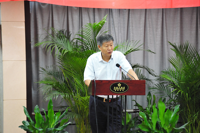 湖北省国防科技工业办公室副主任周峰主持开幕式,武汉大学党委书记韩进致欢迎辞,湖北省船舶与海洋工程设备院士工作中心主任张金麟院士讲话。