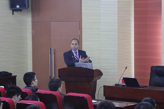 Naser EI-Sheimy教授作了题为“惯性导航技术在移动测绘和室内导航应用中的最新进展及其未来发展趋势”的学术报告。他重点介绍了卡尔加里大学MMS团队在多传感器集成的移动测量系统方面的研究进展,分析了定位导航技术的发展与未来趋势,对GNSS、惯性导航、CCD影像传感器、三维激光扫描以及其它辅助传感器集成的移动测量的技术进行了重点论述,展示了移动测量技术在道路测量、油气管道检测、城市三维建模、高铁线路监测、无人机摄影测量等众多方面的应用和巨大潜力。EI-Sheimy教授强调,未来导航定位将朝着小型化,智能化,低价格,高精度,无缝连接的方向发展,MEMS元件将起到重要作用。他还展示了他率领的MMS团队利用智能手机进行室内室外导航定位的最新成果,并对其个性化服务应用与未来发展做了展望。