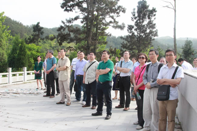 短暂休息之后,大家赶往参观的第二站:新四军第五师纪念馆及司令部旧址。新四军第五师,是在抗日战争转入战略相持阶段的艰难时刻,在华中重镇武汉外围敌后崛起的一支英雄部队。纪念馆和司令部旧址位于湖北大悟县城以南的白果树湾,南有大悟山为屏,北临泉水岭,重峦叠嶂,树木葱茂,里面陈列有五师革命斗争史料和部分革命文物。一幅幅抗战时期鄂豫边区的形势图、一张张革命先烈的照片、一件件先烈们用过的珍贵文物,再现了新四军第五师将士七年抗战及英勇突围的历史画卷,让大家对当时艰苦的生活条件和艰辛的奋斗历程有了更深的了解和体会。