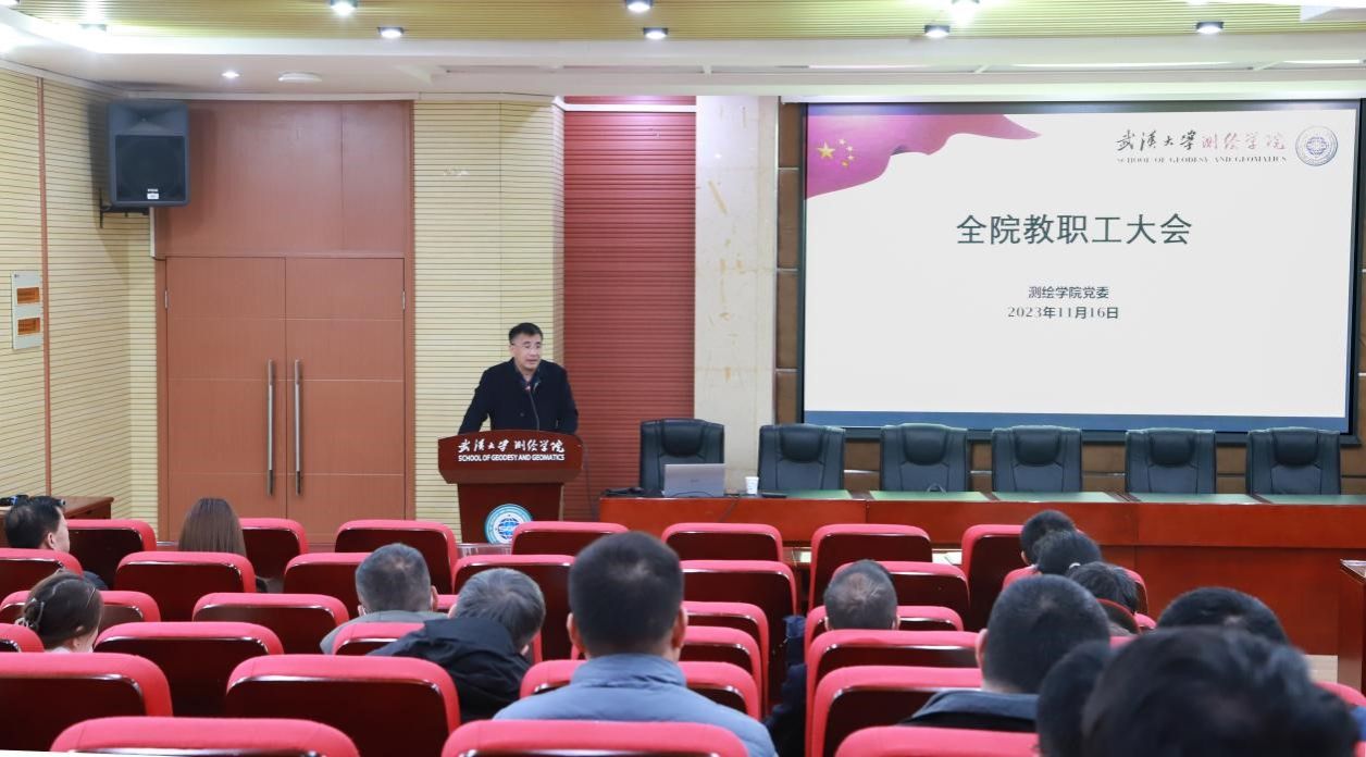 11月16日下午,学院在202报告厅举行教职工理论学习专题辅导报告会暨教职工大会。beat365和国家卫星定位系统工程技术研究中心全体教职工参会。会议由学院党委书记晏金柱主持。