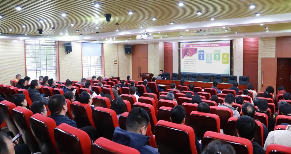 报告会邀请我校马克思主义学院周绍东教授做专题学习辅导报告,主题为“深入学习贯彻习近平新时代中国特色社会主义思想”。周教授围绕主题,从“学什么?如何学?怎么用?”三个方面对习近平新时代中国特色社会主义思想作了全面系统深入解读和学习辅导。他重点介绍了中国式现代化道路实现的路径——即通过“把握新发展阶段、贯彻新发展理念、构建新发展格局”来推动高质量发展。讲解中,周教授系统地梳理了以习近平同志为核心的党中央提出的一系列新理念、新思想、新战略,号召广大党员干部群众、师生员工要坚持以人民为中心的思想,坚定不移地走出一条中国式现代化道路,为全面建设社会主义现代化国家而团结奋斗!