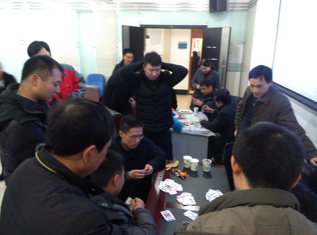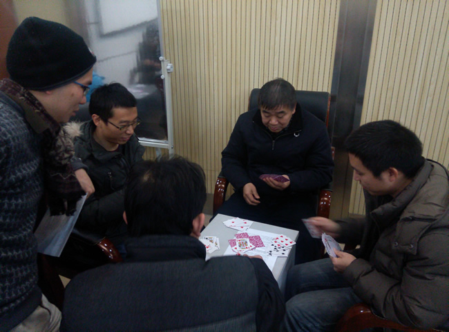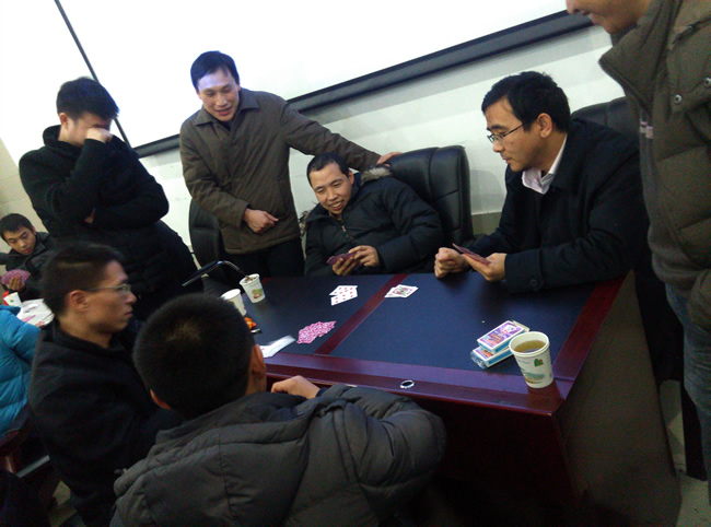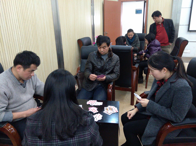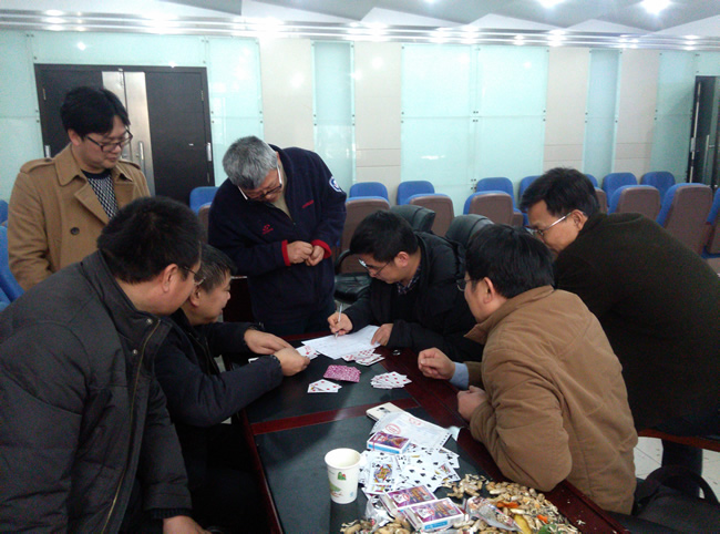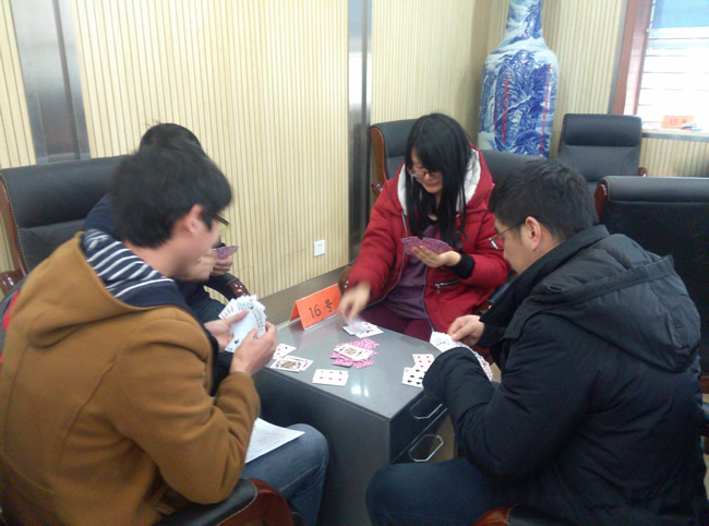 扑克牌“双升”比赛是此次智力运动会的重头戏,教职工踊跃报名,共有来各系、所、实验中心、党政办近80名教职工组队参赛。选手们配合默契,“捉对厮杀”,比赛紧张激烈,精彩纷呈。经过三轮激战,实验中心赵岚、袁斌和地球物理研究所金涛勇、汪海洪两对选手脱颖而出,拔得“双升”比赛头筹。