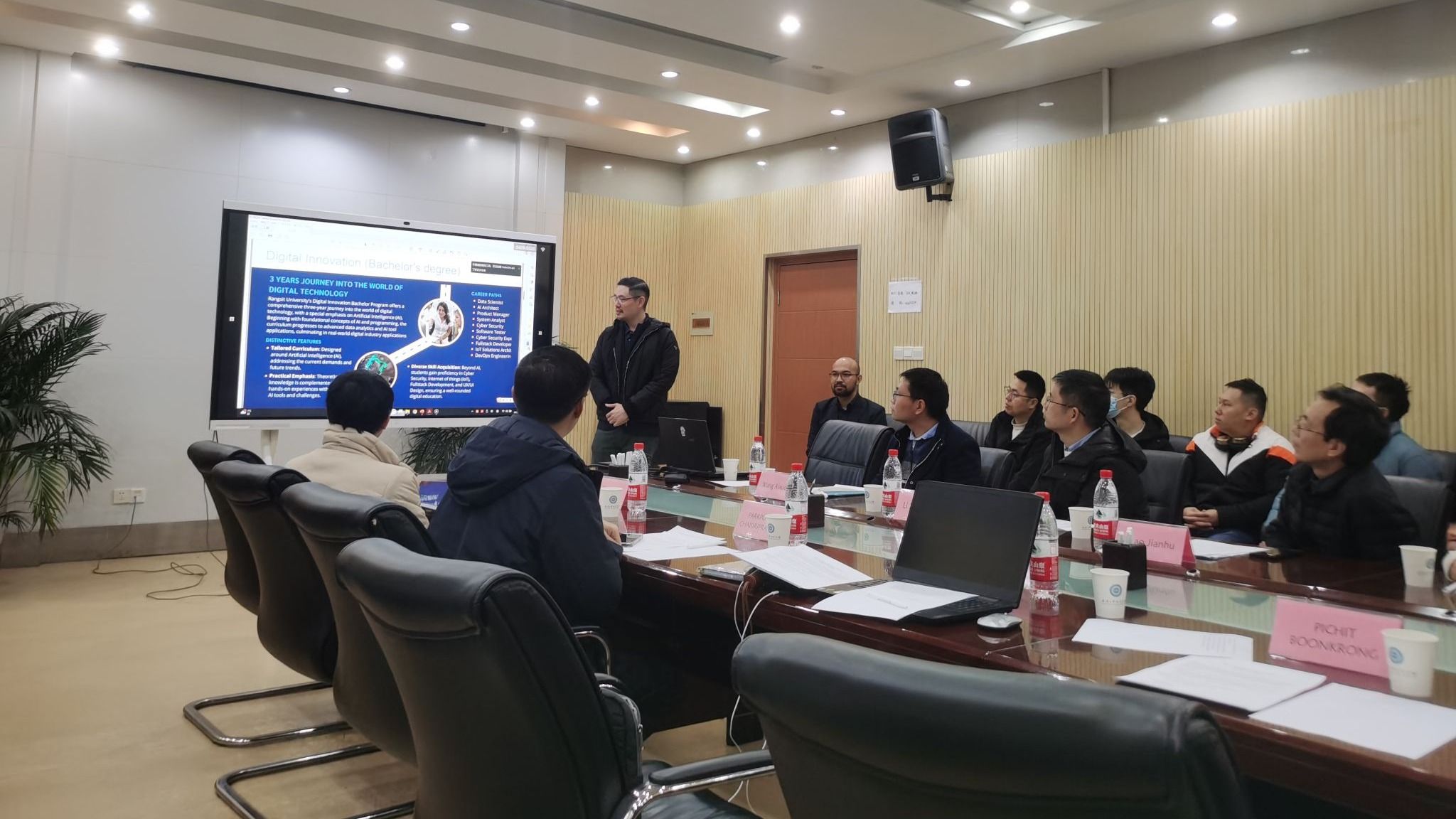 2023年12月14日上午,泰国兰实大学数字创新技术学院副院长Dr.Parkpoom Chaisiriprasert、数字创新技术学院数字创新系主任Dr.Karn Yongsiriwit等一行四人到访beat365体育官方网站并进行学术交流。学院副院长李星星教授、海洋研究院院长赵建虎教授、王爱学老师及相关课题组研究生参加了交流座谈。