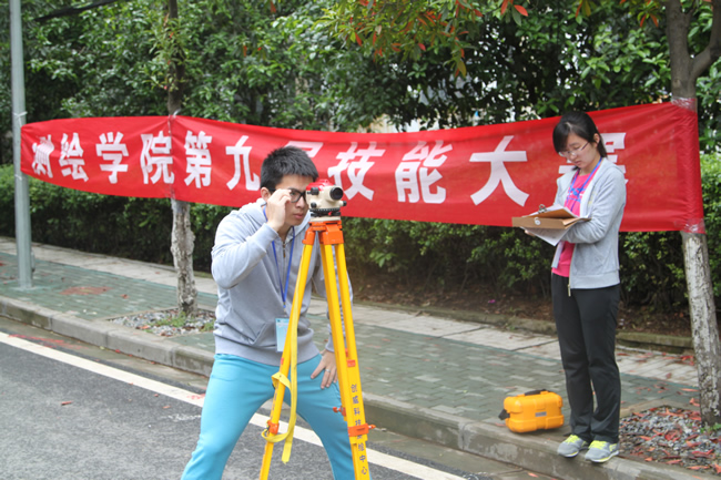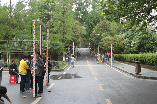 此次比赛主要是外业操作比赛,分为导线测量和水准测量两个项目,每个项目又分为仪器操作测量环节和数据处理环节。在18名专业老师和20余名学生志愿者的组织协调下,比赛从早上7点半正式开始,持续到下午5点半结束,紧张而有序。