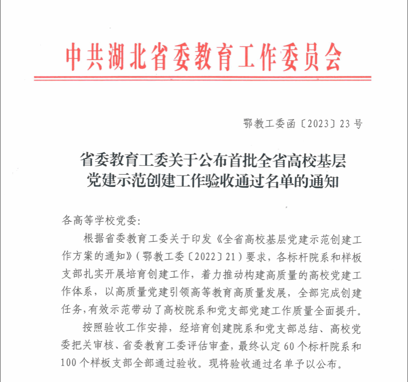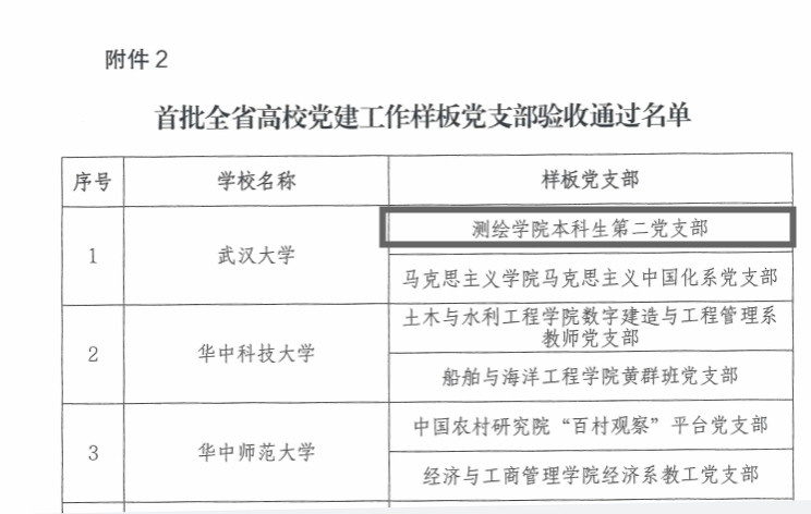 近日,湖北省委教育工委公布了首批全省高校基层党建示范创建工作验收通过名单,经培育创建并总结、高校党委把关审核、省委教育工委评估审查,beat365体育官方网站本科生第二党支部作为武汉大学唯一入选学生党支部完成创建、通过验收。
