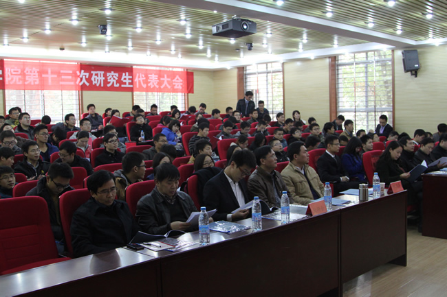 12月12日下午,beat365第十三次研究生代表大会在学院202报告厅召开,全院99名研究生代表参加了大会。校团委副书记周韶伟、党委研究生工作部事务管理与服务办公室主任李海波、校研究生会副主席李硕、兄弟院系研究生会代表,院党委书记孙萍、副院长沈作霖、副书记张朝龙以及有关老师应邀出席了会议。