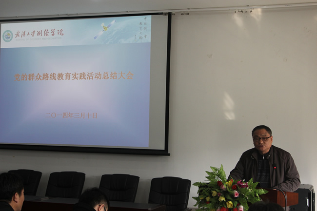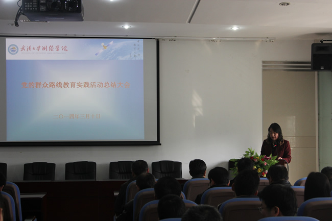 院党委书记孙萍代表学院作活动总结报告。她首先介绍了学院教育实践活动的总体情况:学院党委共44个支部、821名党员按照中央的部署和学校要求,认真开展了学习教育、征求意见、民主生活会、整改活动等环节,圆满完成各项活动,达到预期的效果。