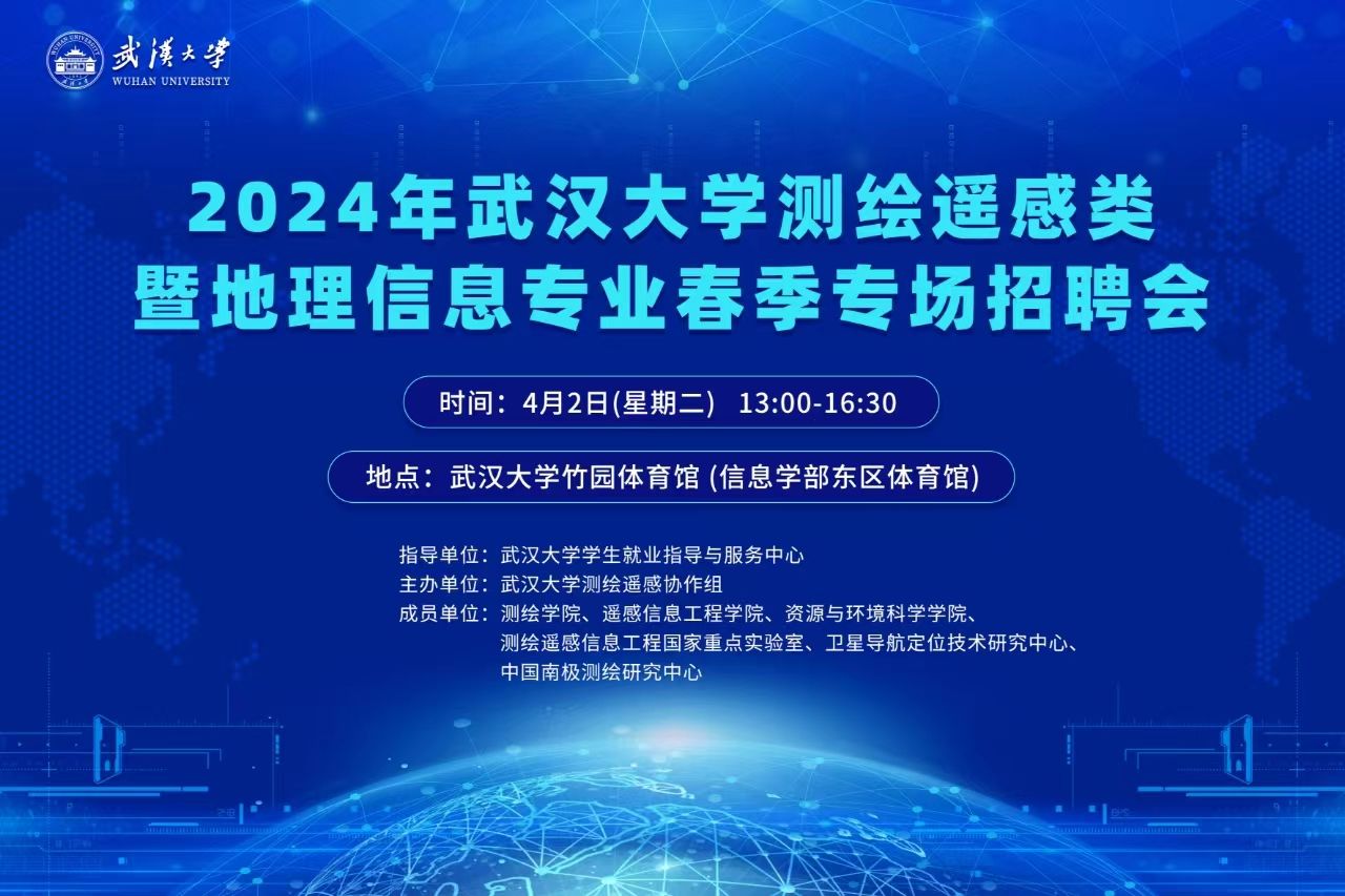 为深入贯彻落实党的二十大精神及党中央、国务院关于高校毕业生就业工作的决策部署,进一步推动测绘遥感类及地理信息专业就业市场建设,为用人单位提供更精准的人才供需对接服务,4月2日下午,2024年武汉大学测绘遥感类暨地理信息专业春季专场招聘会在武汉大学竹园体育馆成功举办。本次专场招聘会共吸引来自全国的70多家优质行业单位参会,为武汉大学测绘遥感类、地理信息专业2024届毕业生就业和2025届毕业生实习搭建了良好的供需见面平台。