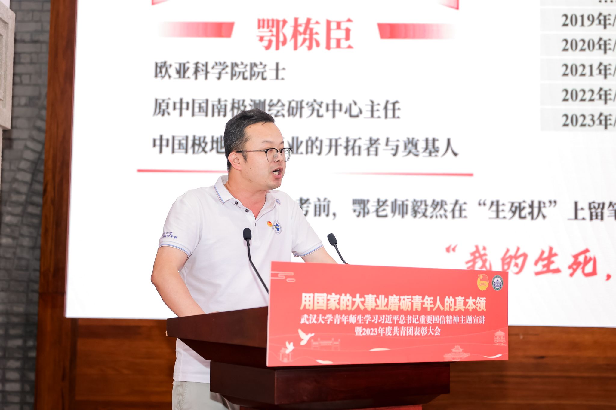 4月28日下午,学校在樱顶老图书馆报告厅举办了武汉大学青年师生学习习近平总书记重要回信精神主题宣讲暨2023年度共青团表彰大会,进一步学习贯彻党的二十大精神和习近平总书记给武汉大学参加中国南北极科学考察队师生代表的重要回信精神,表彰先进、树立典型,激励广大团员青年不忘跟党初心、牢记青春使命。