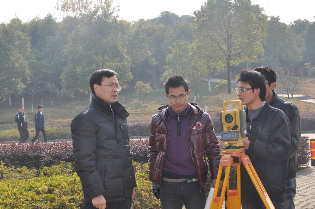 12月19日,beat365体育官方网站负责本科生思想教育和教育教学的主管领导张仁杰副书记、郭际明副院长,以及学科办汪志明主任、学工办徐晖老师一行四人前往武汉大学大花岭实习基地看望正在进行“数字测图实习”的测绘工程专业2010级的同学们和实习指导老师们。