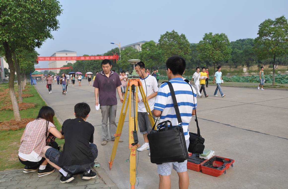 武汉大学大花岭实习基地坐落在汤逊湖旁武汉东湖学院内,该基地环境优美、范围大,具备了典型的地物地貌特征,适合开展测绘工程专业的GPS控制测量、几何水准测量以及数字测图等实习。为了保证学生实习按照测绘生产程序进行,并保证一次容纳200多个学生实习,2011年9月,学院主管本科教学的副院长郭际明教授、实验中心主任花向红教授、测量所所长邹进贵教授、卫星所黄劲松副教授、罗喻真、申丽丽等几位老师冒着炎热的天气,在现场踏勘,用5天的时间埋设了130多个测量控制点,并采用GPS静态测量联测武汉站和GPS RTK的方法,测定了这些控制点的平面坐标,通过水准测量和GPS高程拟合的方法,获得这些控制点的高程,为学生实习提供了测量基准。