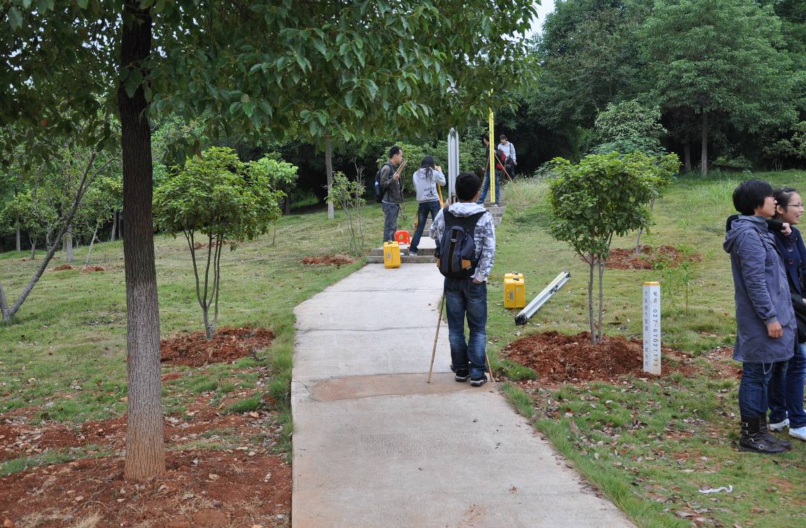 2011年12月14日,基地迎来了建成后首批2010级测绘工程专业《数字测图实习》的同学们。考虑到实习场地问题,此次实习分二批进行,一批在基地外业数据采集,另一批在学校进行内业成图,然后进行交换,直至外业数据采集工作结束。12月27日,随着2010级1-5班同学的欢呼声,数字测图实习外业工作到此结束。