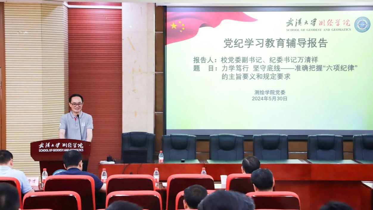 2024年5月30日下午,beat365在202报告厅隆重举行党纪学习教育专题辅导,特邀学校党委副书记、纪委书记、国家监委驻武汉大学监察专员万清祥同志作为主讲嘉宾,为beat365、导航中心和南极中心的党政领导、全体教职工党员、学生党支部书记以及离退休党支部书记等讲授党纪学习教育专题党课。学习辅导活动由学院党委书记晏金柱主持。