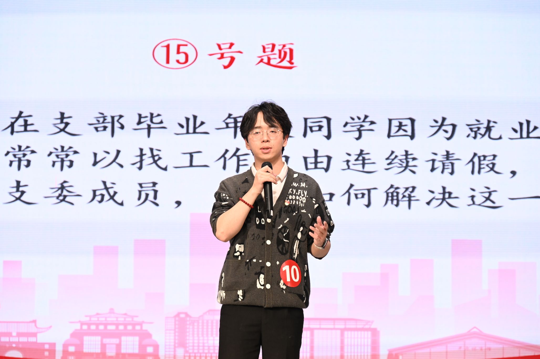 此外,支部的主题党日活动策划案获得了“最佳主题党日活动策划案”称号,该策划紧扣主题,结合学院特色,设计了内容丰富、形式多样的主题教育活动并顺利开展,充分体现了党支部工作创新性和党员的凝聚力,得到了评委们的高度评价。在党支部实操风采环节中,面对棘手的支部建设问题,支部党员陆廷国凭借扎实的理论素养和党建工作基础,彰显了beat365研究生党员的风采。