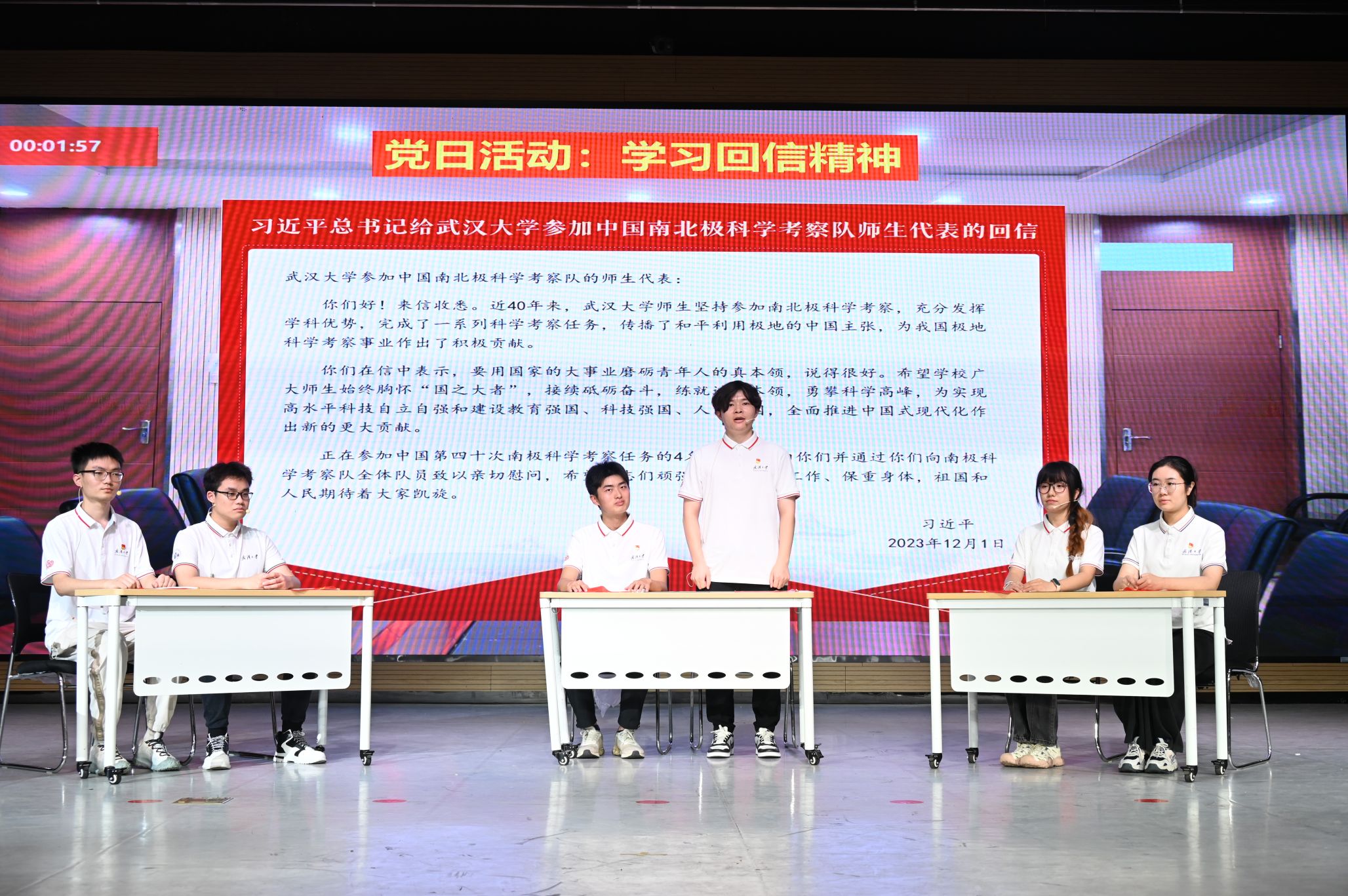 在比赛过程中,联合支部策划编排的情景剧《勇踏极地征程,共筑科考使命》,围绕“学习贯彻习近平总书记给武汉大学参加中国南北极科学考察队师生代表的重要回信精神”这一主题,不仅展现了支部同志与南极科考队员对科考工作的热切关注和积极响应,也生动展现了他们对习近平总书记重要回信精神的深入学习和实践,以实际行动践行了习近平总书记的殷切期望。