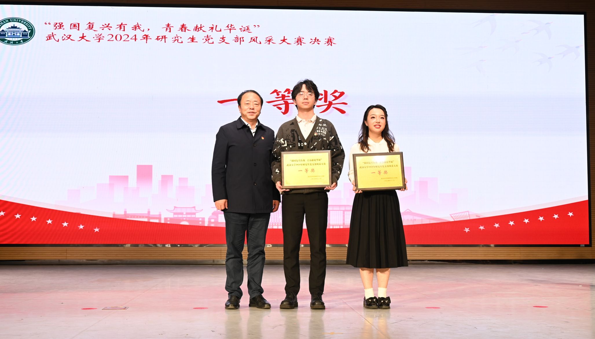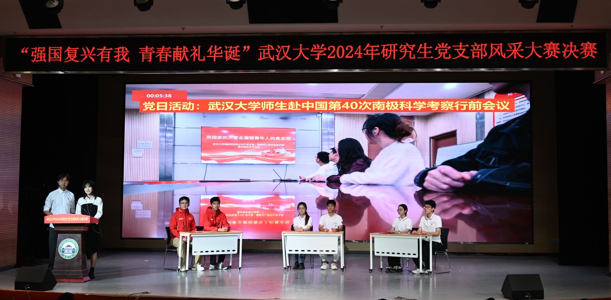 2024年11月12日,“强国复兴有我,青春献礼华诞”武汉大学2024年研究生党支部风采大赛决赛在人文馆主厅举行。beat365体育官方网站2023级硕士生第一党支部与中国南极测绘研究中心研究生党支部组成联合党支部以信息学部第一名的成绩进入决赛,凭借扎实的支部工作基础和在学习风采、活力风采、实操风采三个环节的精彩表现,荣获一等奖,策划开展的主题党日活动获评最佳主题党日策划案。