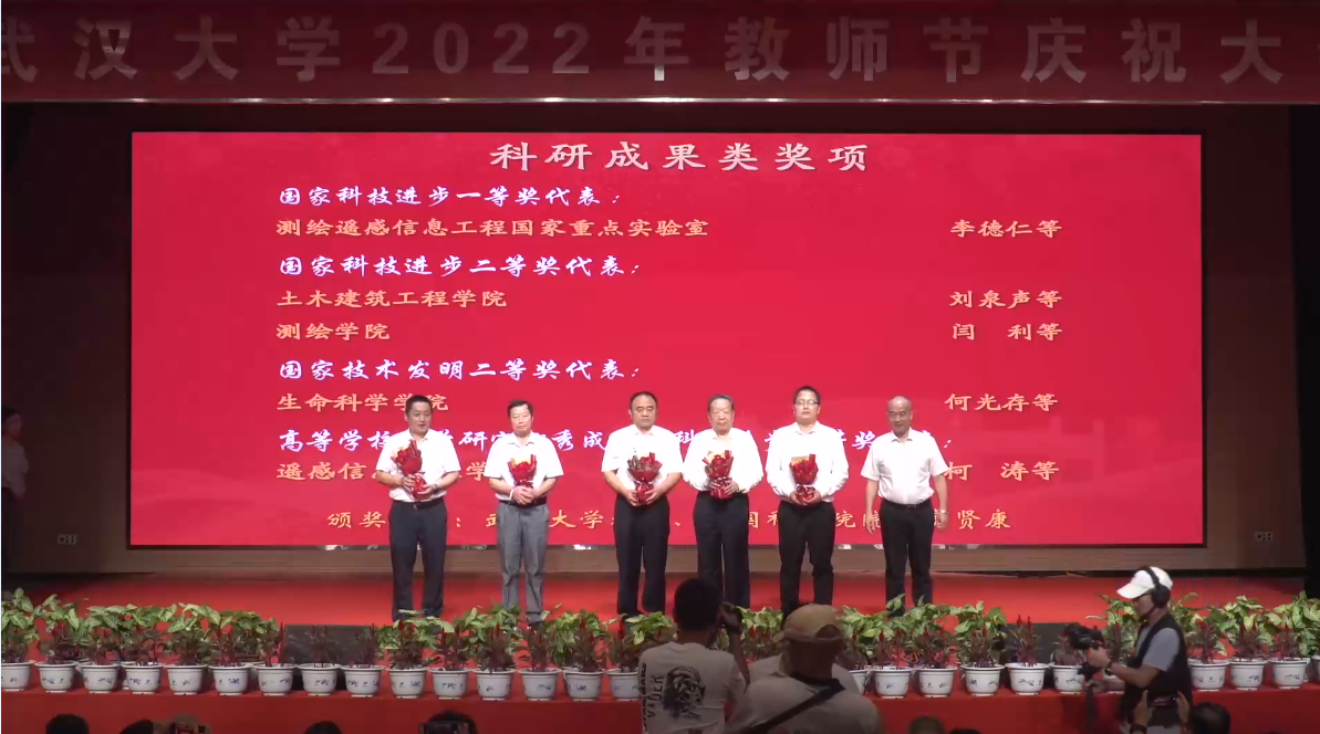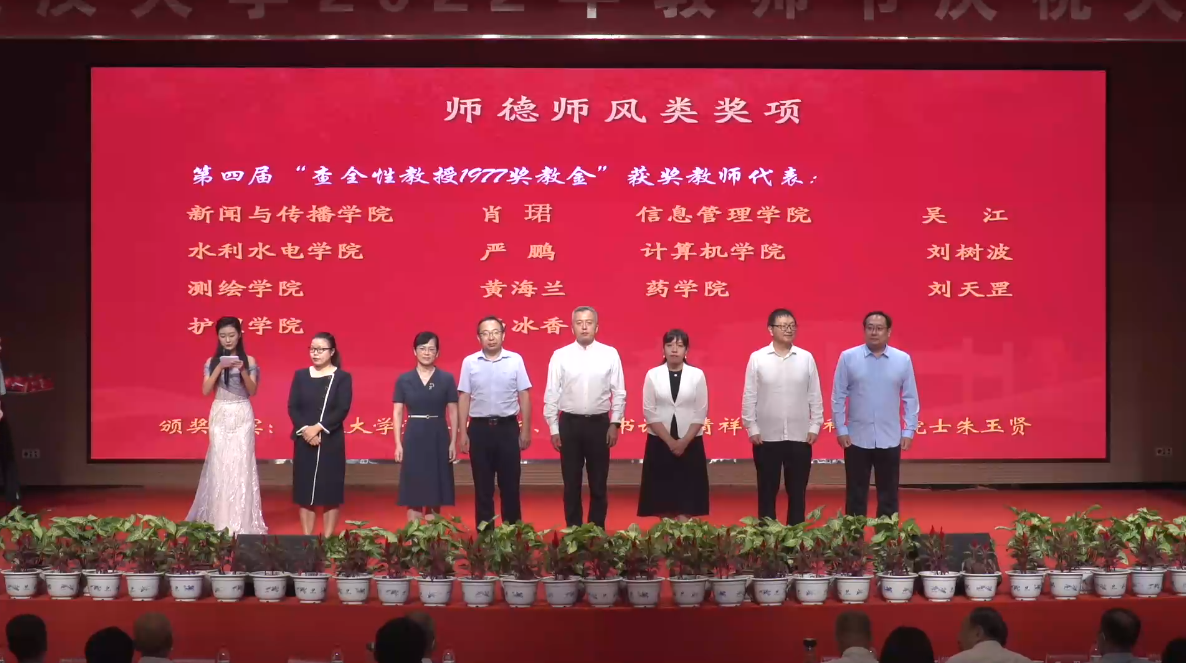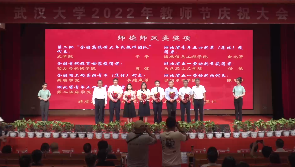 为庆祝第38个教师节,9月9日下午,武汉大学在人文馆主厅隆重举行教师节庆祝大会,对获得各类荣誉称号和奖励的教师代表进行表彰。此次庆祝大会按照线上线下相结合的形式进行,beat365体育官方网站组织教职工观看了大会现场直播。