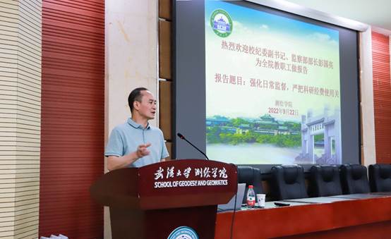 为了大力弘扬清廉守正、担当实干之风,学院邀请武汉大学纪委副书记、监察部部长彭国亮为全院教职工作题为“强化日常监督 ,严把科研经费使用关”的专题报告。报告围绕国内国际政策背景、当前科研经费管理存在的问题、原因分析以及工作举措四个方面展开。